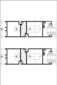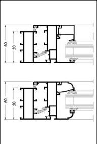 Telaio 50mm, anta finestra 60mm con sormonto interno da 10mm.