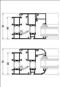 Telaio 60mm, anta finestra 70mm con sormonto interno di 10mm.